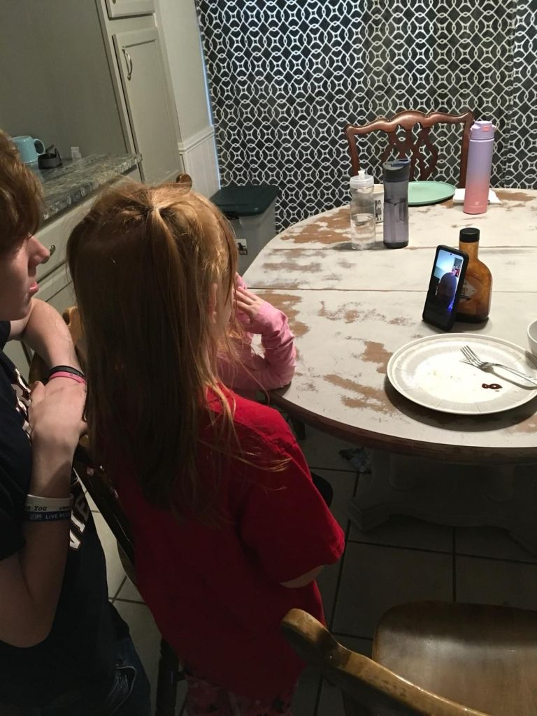 We tend to do the dinner call since that’s when the kids are all around the table. It’s the only time they are in one spot. We pass the phone around and ask each of them about their days. We tell them how much we love them and reinforce timelines for coming home (two more sleeps)!